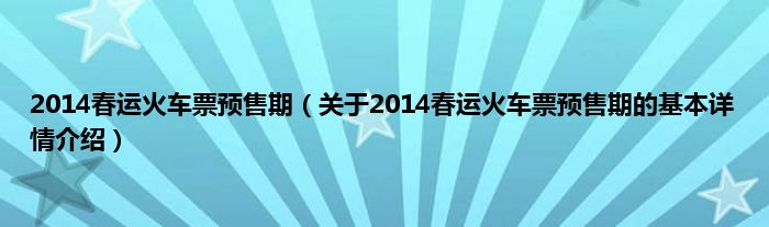 本文关于2014春运火车票预售期的基本详情介绍就讲解完毕,希望对大家有所帮助。