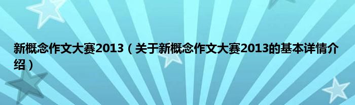 本文关于新概念作文大赛2013的基本详情介绍就讲解完毕,希望对大家有所帮助。