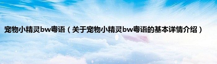 本文关于宠物小精灵bw粤语的基本详情介绍就讲解完毕,希望对大家有所帮助。