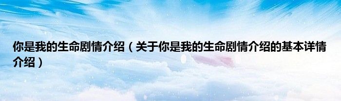 本文关于你是我的生命剧情介绍的基本详情介绍就讲解完毕,希望对大家有所帮助。
