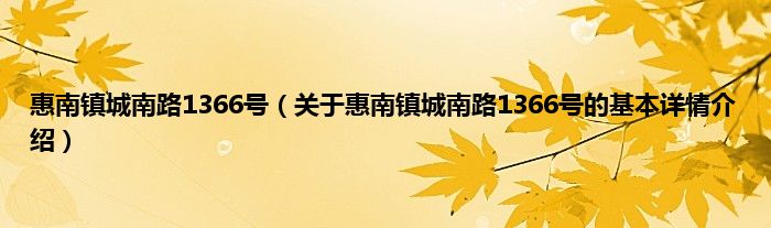 本文关于惠南镇城南路1366号的基本详情介绍就讲解完毕,希望对大家有所帮助。