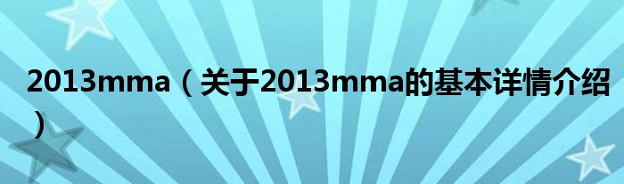 大家好我是小蝌蚪,2013mma,关于2013mma的基本详情介绍很多人还不知道,那么现在让我们一起来看看吧!