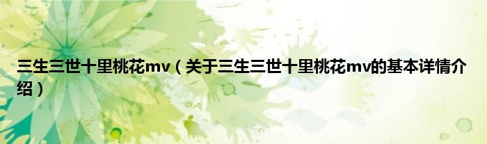 本文关于三生三世十里桃花mv的基本详情介绍就讲解完毕,希望对大家有所帮助。