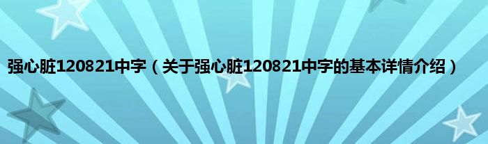 强心脏120821中字(关于强心脏120821中字的基本详情介绍)