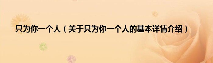 本文关于只为你一个人的基本详情介绍就讲解完毕,希望对大家有所帮助。
