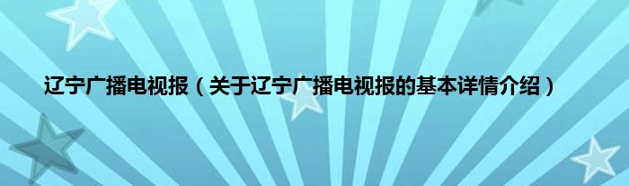 本文关于辽宁广播电视报的基本详情介绍就讲解完毕,希望对大家有所帮助。