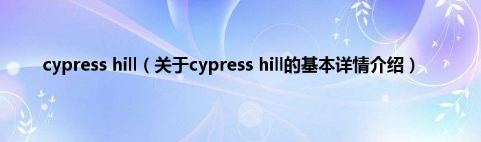本文关于cypress hill的基本详情介绍就讲解完毕,希望对大家有所帮助。