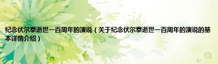 本文关于纪念伏尔泰逝世一百周年的演说的基本详情介绍就讲解完毕,希望对大家有所帮助。