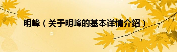 明峰(关于明峰的基本详情介绍)