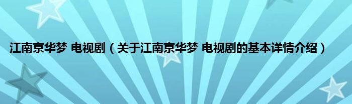 本文关于江南京华梦 电视剧的基本详情介绍就讲解完毕,希望对大家有所帮助。