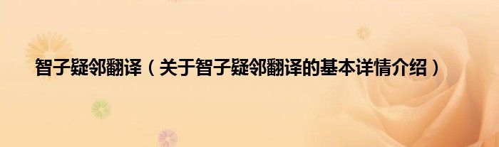 本文关于智子疑邻翻译的基本详情介绍就讲解完毕,希望对大家有所帮助。