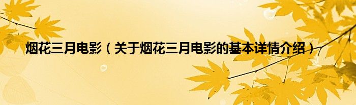 本文关于烟花三月电影的基本详情介绍就讲解完毕,希望对大家有所帮助。