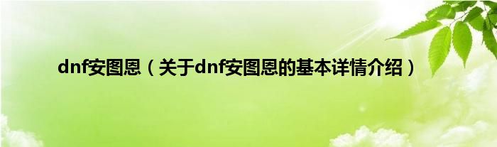 本文关于dnf安图恩的基本详情介绍就讲解完毕,希望对大家有所帮助。