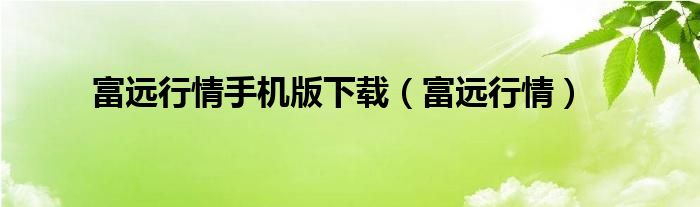 大家好,小问来为大家解答以上问题。富远行情手机版下载,富远行情这个很多人还不知道,现在让我们一起来看看吧!