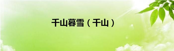 大家好,小问来为大家解答以上问题。千山暮雪,千山这个很多人还不知道,现在让我们一起来看看吧!