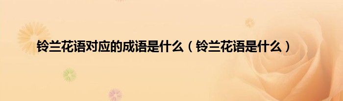 以上就是【铃兰花语对应的成语是什么,铃兰花语是什么】相关内容。