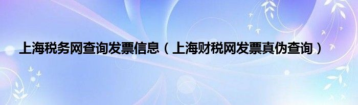 上海税务网查询发票信息(上海财税网发票真伪查询)