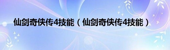 仙剑奇侠传4技能(仙剑奇侠传4技能)