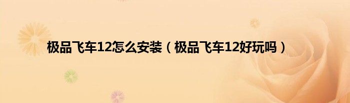 以上就是【极品飞车12怎么安装,极品飞车12好玩吗】相关内容。