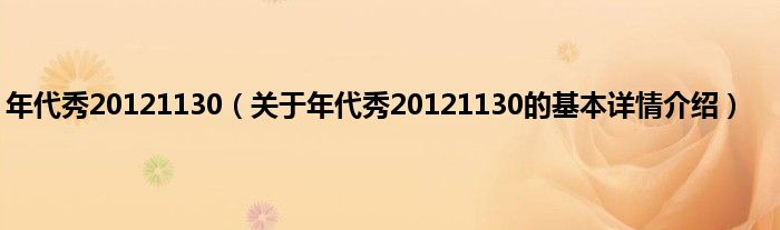 本文关于年代秀20121130的基本详情介绍就讲解完毕,希望对大家有所帮助。