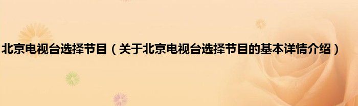 本文关于北京电视台选择节目的基本详情介绍就讲解完毕,希望对大家有所帮助。