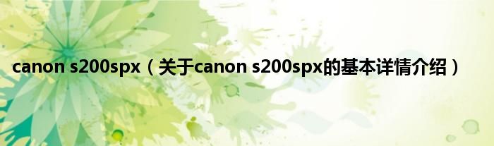 本文关于canon s200spx的基本详情介绍就讲解完毕,希望对大家有所帮助。