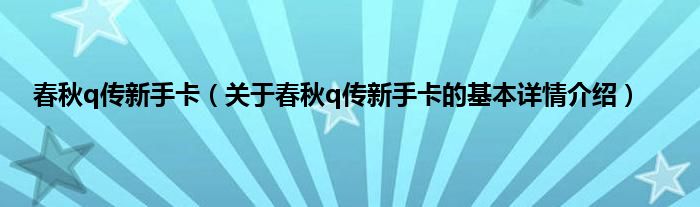 本文关于春秋q传新手卡的基本详情介绍就讲解完毕,希望对大家有所帮助。