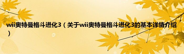 wii奥特曼格斗进化3(关于wii奥特曼格斗进化3的基本详情介绍)