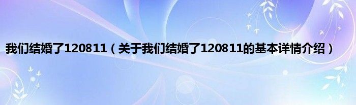 本文关于我们结婚了120811的基本详情介绍就讲解完毕,希望对大家有所帮助。