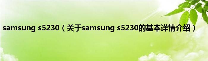本文关于samsung s5230的基本详情介绍就讲解完毕,希望对大家有所帮助。