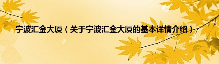 本文关于宁波汇金大厦的基本详情介绍就讲解完毕,希望对大家有所帮助。
