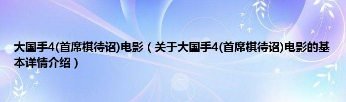 大国手4(首席棋待诏)电影(关于大国手4(首席棋待诏)电影的基本详情介绍)