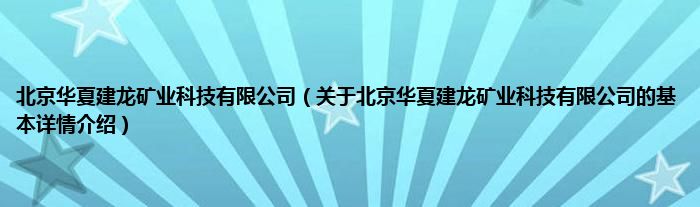 本文关于北京华夏建龙矿业科技有限公司的基本详情介绍就讲解完毕,希望对大家有所帮助。