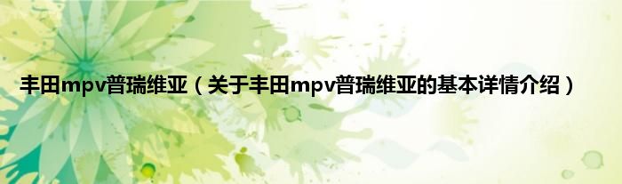 本文关于丰田mpv普瑞维亚的基本详情介绍就讲解完毕,希望对大家有所帮助。