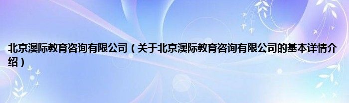本文关于北京澳际教育咨询有限公司的基本详情介绍就讲解完毕,希望对大家有所帮助。