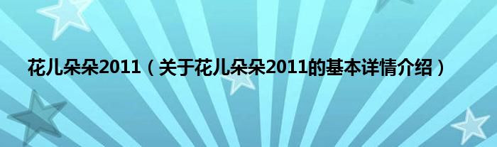 本文关于花儿朵朵2011的基本详情介绍就讲解完毕,希望对大家有所帮助。
