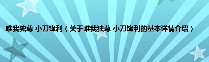大家好我是小蝌蚪,唯我独尊 小刀锋利,关于唯我独尊 小刀锋利的基本详情介绍很多人还不知道,那么现在让我们一起来看看吧!