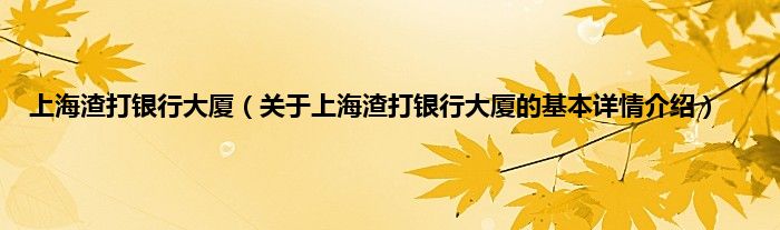 上海渣打银行大厦(关于上海渣打银行大厦的基本详情介绍)