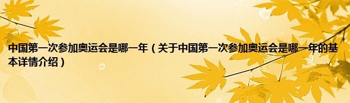 本文关于中国第一次参加奥运会是哪一年的基本详情介绍就讲解完毕,希望对大家有所帮助。