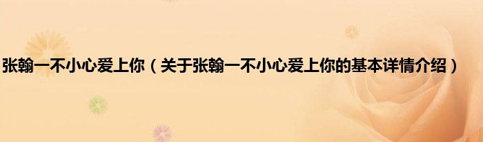 本文关于张翰一不小心爱上你的基本详情介绍就讲解完毕,希望对大家有所帮助。