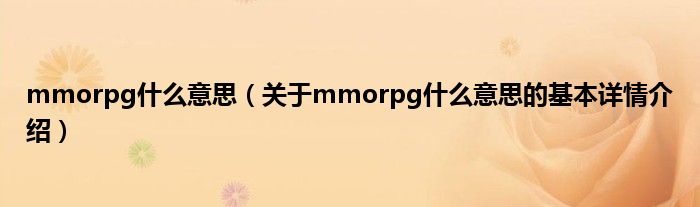 mmorpg什么意思(关于mmorpg什么意思的基本详情介绍)