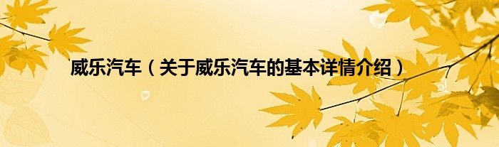 本文关于威乐汽车的基本详情介绍就讲解完毕,希望对大家有所帮助。