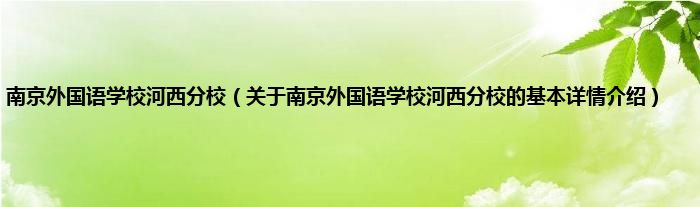 本文关于南京外国语学校河西分校的基本详情介绍就讲解完毕,希望对大家有所帮助。