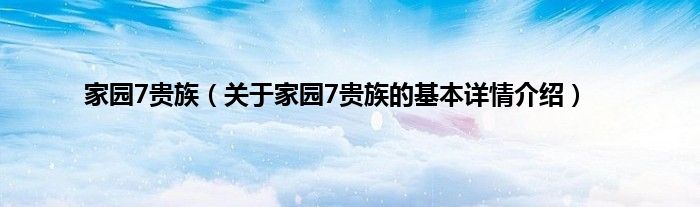 大家好我是小蝌蚪,家园7贵族,关于家园7贵族的基本详情介绍很多人还不知道,那么现在让我们一起来看看吧!