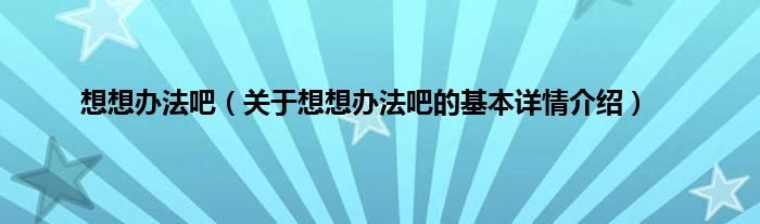 本文关于想想办法吧的基本详情介绍就讲解完毕,希望对大家有所帮助。