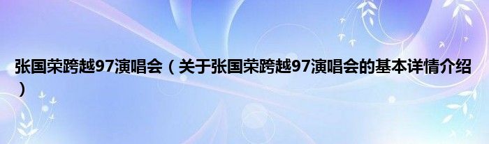 本文关于张国荣跨越97演唱会的基本详情介绍就讲解完毕,希望对大家有所帮助。