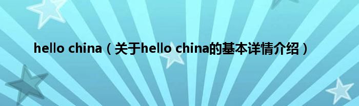 本文关于hello china的基本详情介绍就讲解完毕,希望对大家有所帮助。