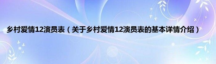 本文关于乡村爱情12演员表的基本详情介绍就讲解完毕,希望对大家有所帮助。