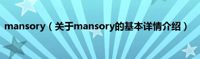 本文关于mansory的基本详情介绍就讲解完毕,希望对大家有所帮助。