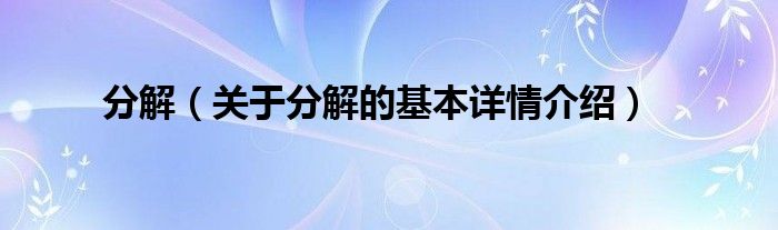 大家好我是小蝌蚪,分解,关于分解的基本详情介绍很多人还不知道,那么现在让我们一起来看看吧!